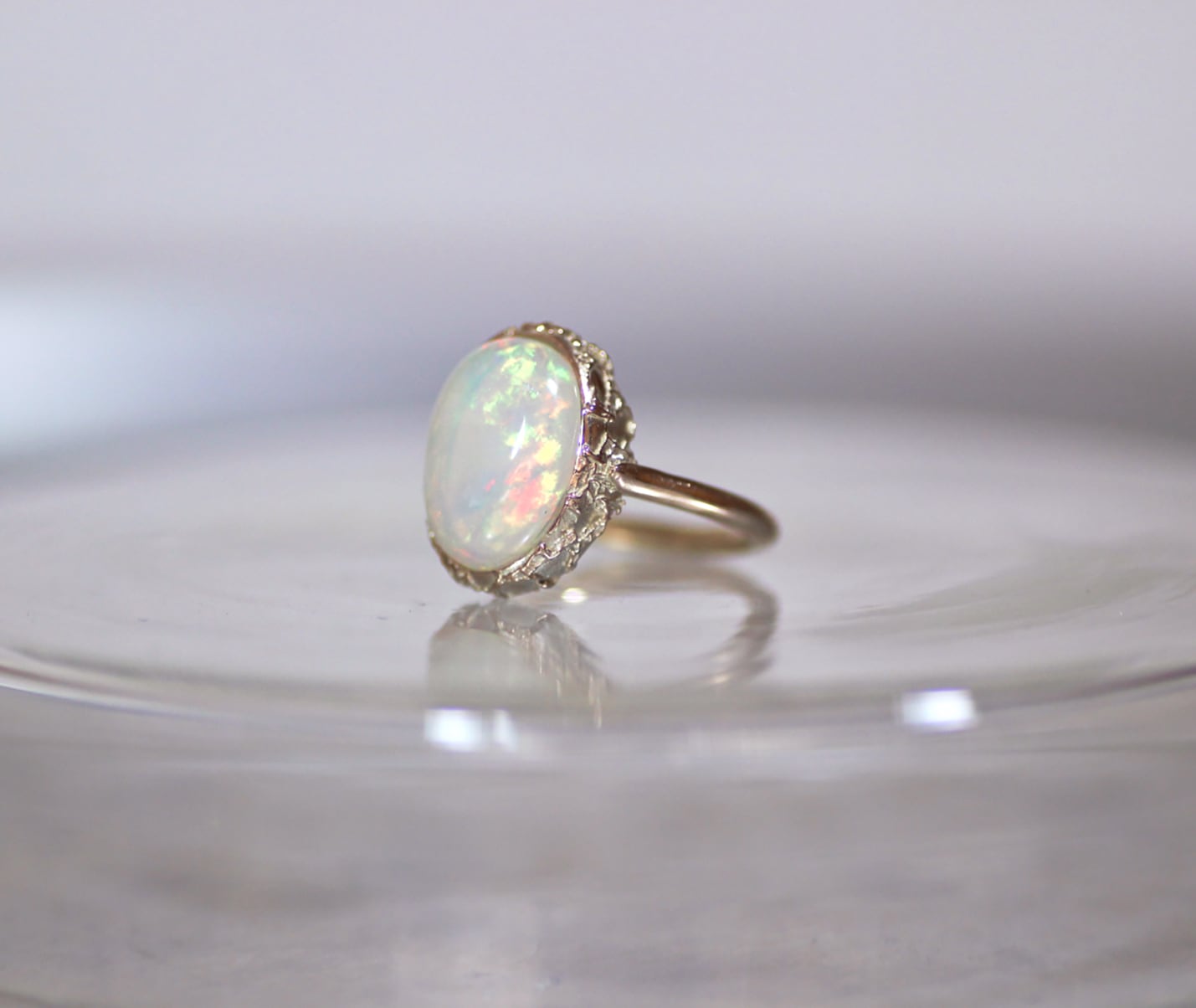 3.39ct Ethiopian Opal ring in K10YG US size 5 (pinky ring)