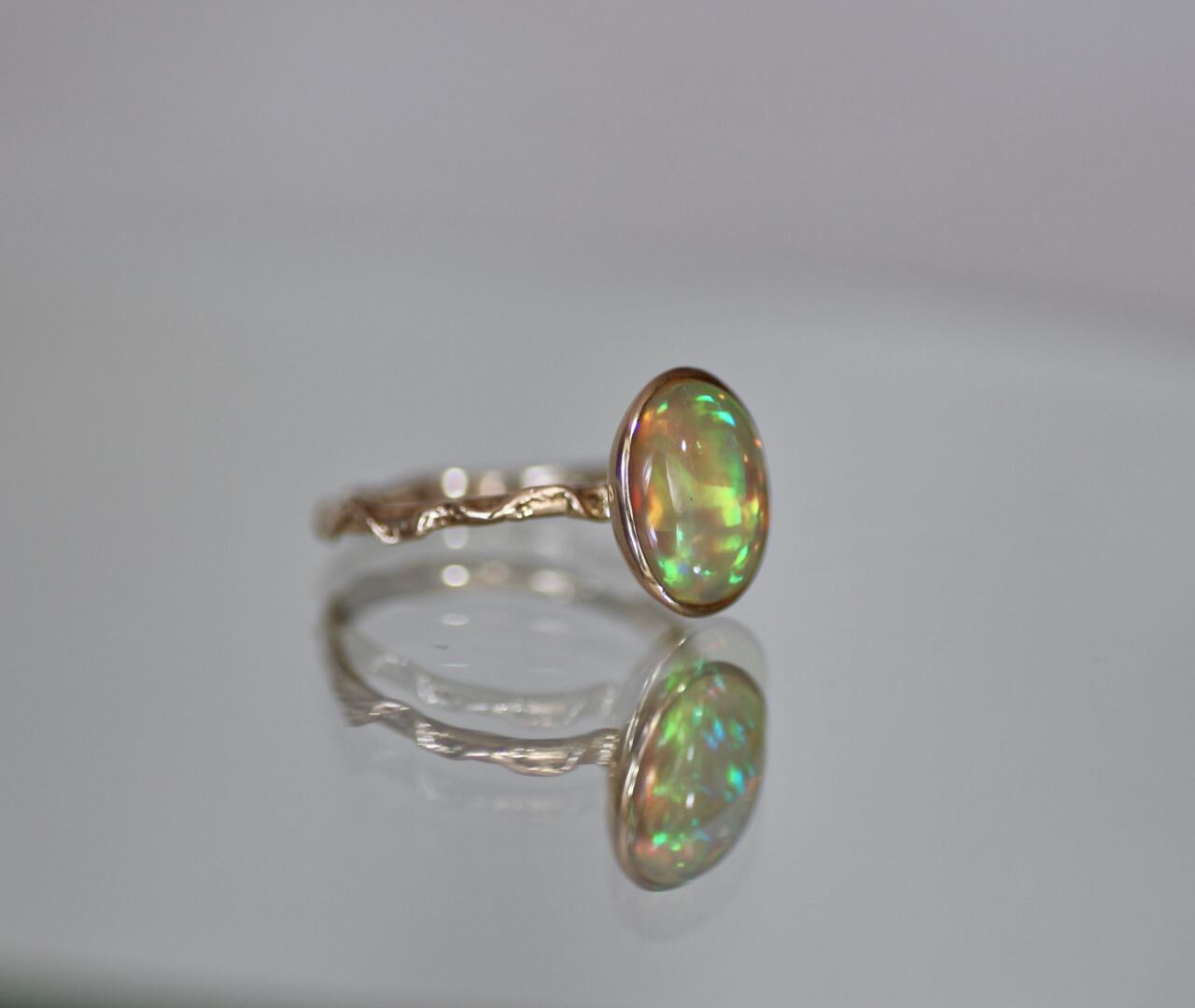 OV cab. Ethiopian opal ring in K10YG US size 7