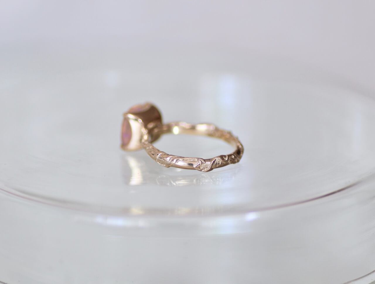 神秘的なオパールのシラーとK10YGの上品な色味の輝きが美しく、