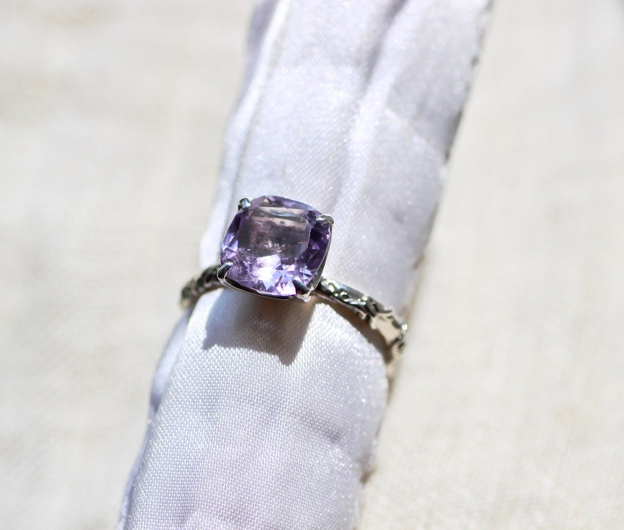 8/8mm cushion cut rose amethyst クッションカット ローズアメシストリング
