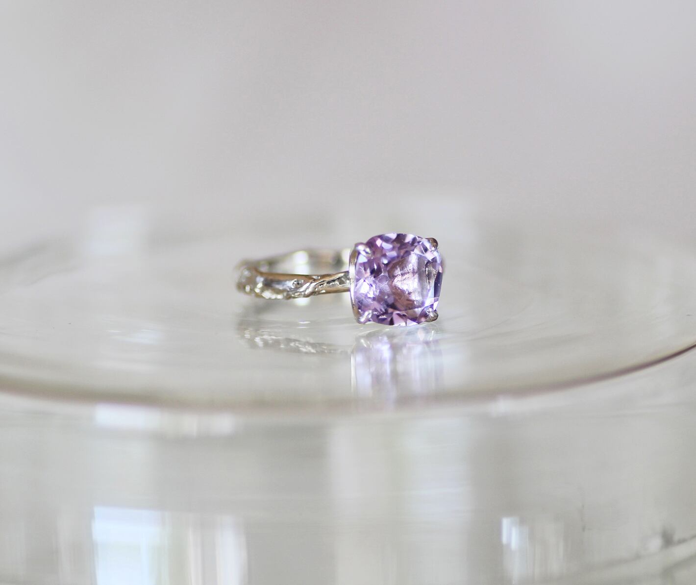 ラベンダー色のローズアメシストのフェミニンな色合いと