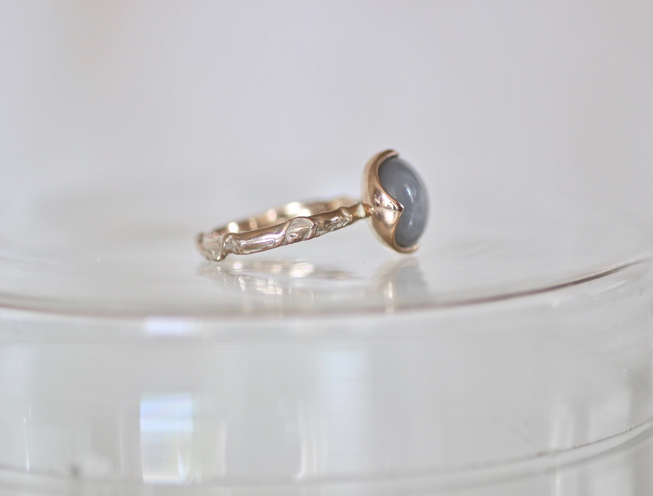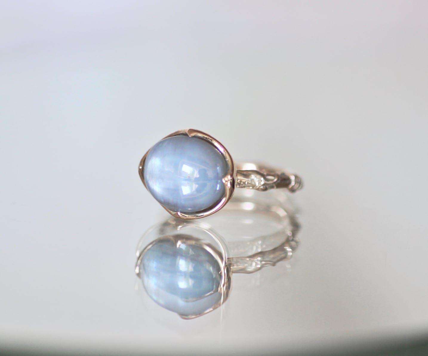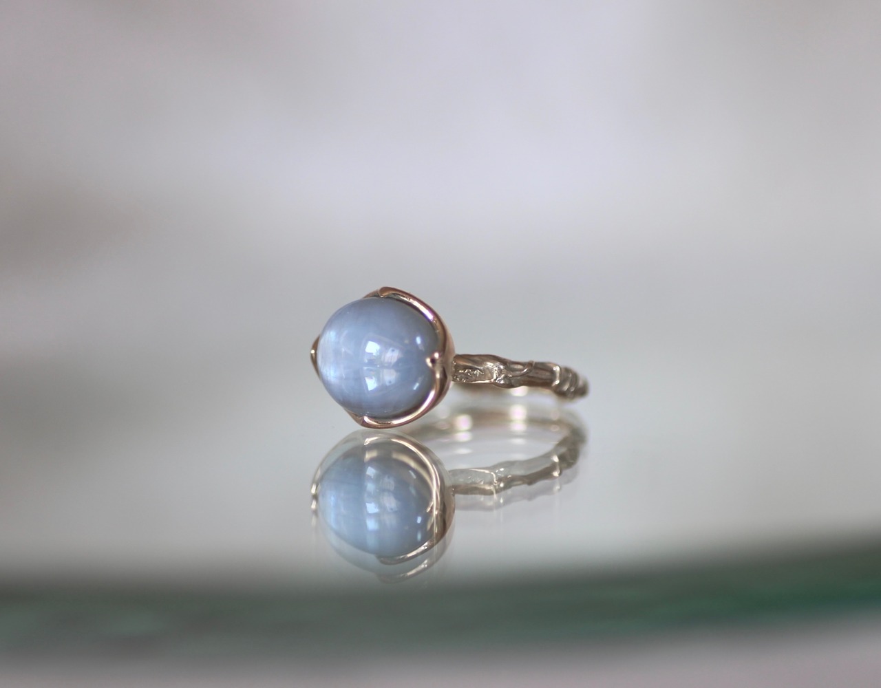 この石の神秘的な美しさを際立たせるデザインのリングに