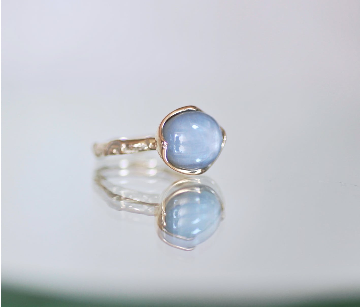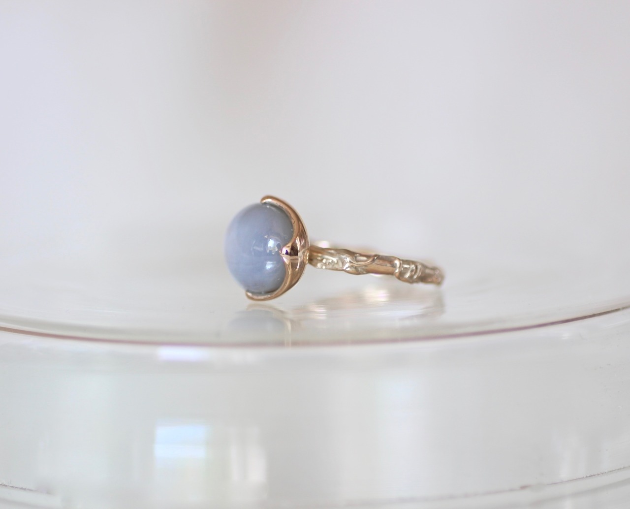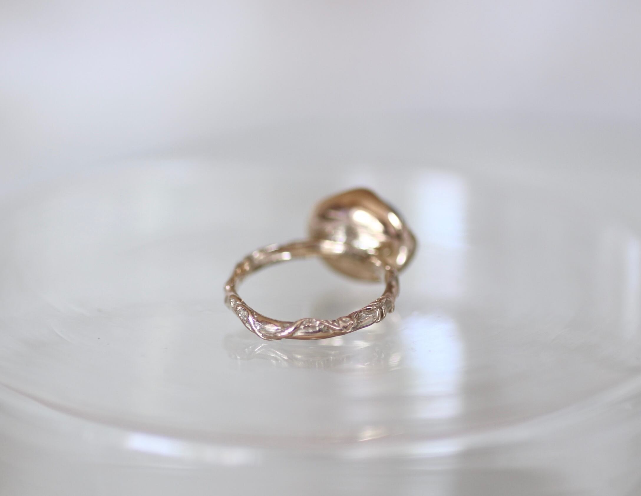 この石の神秘的な美しさを際立たせるデザインのリングに