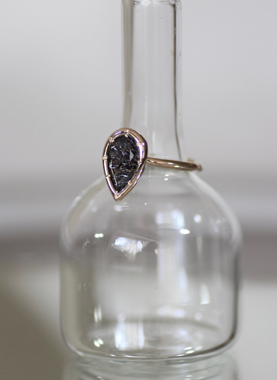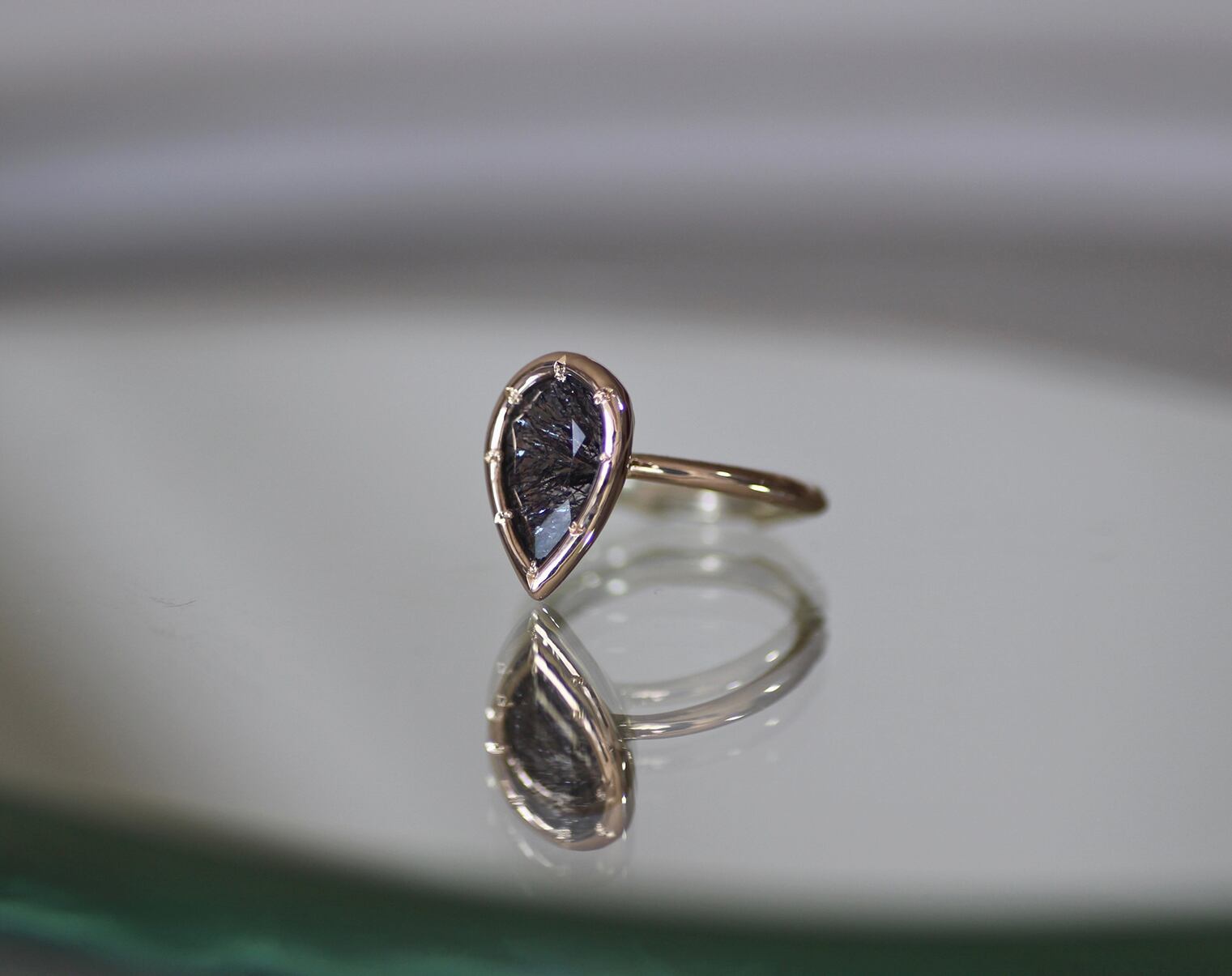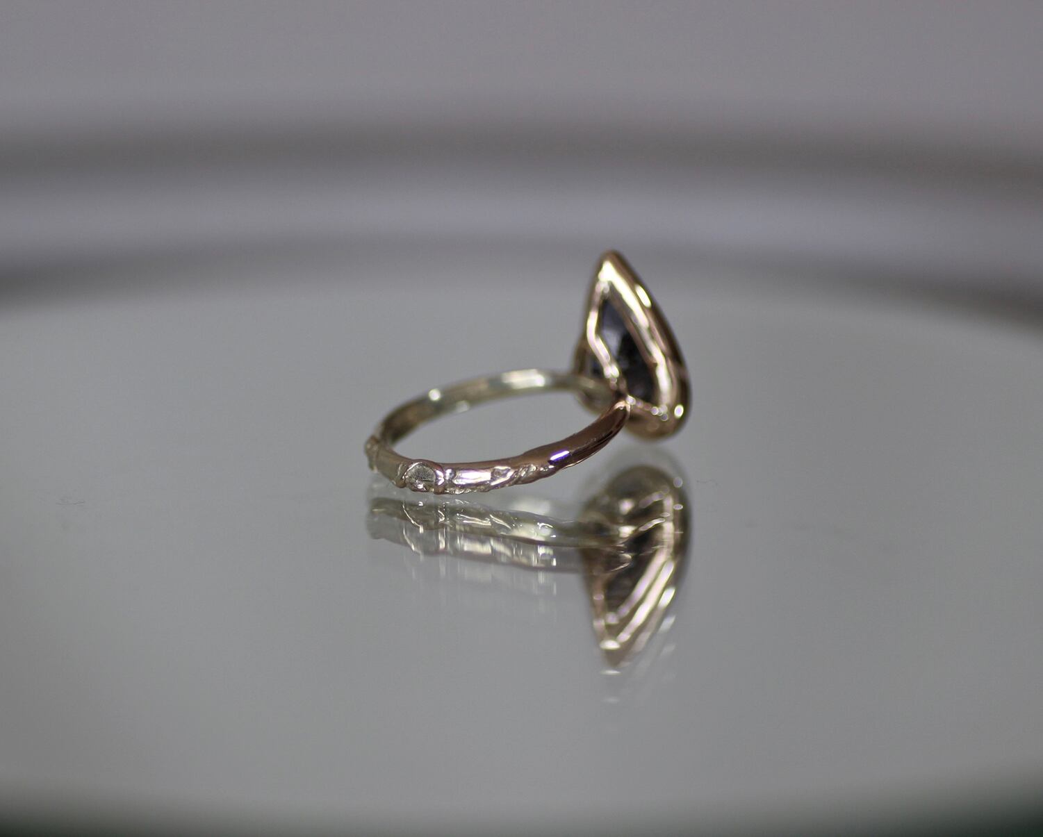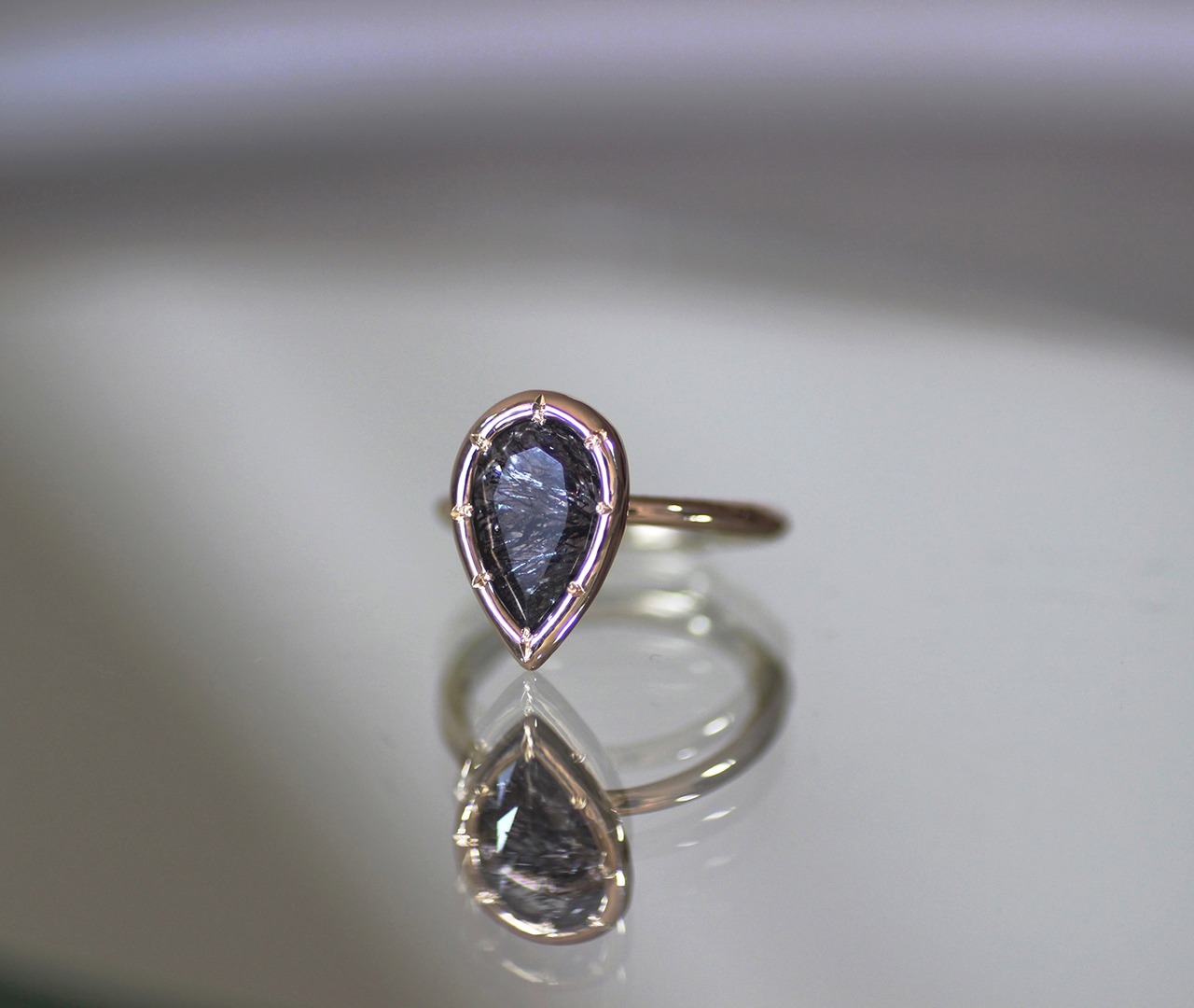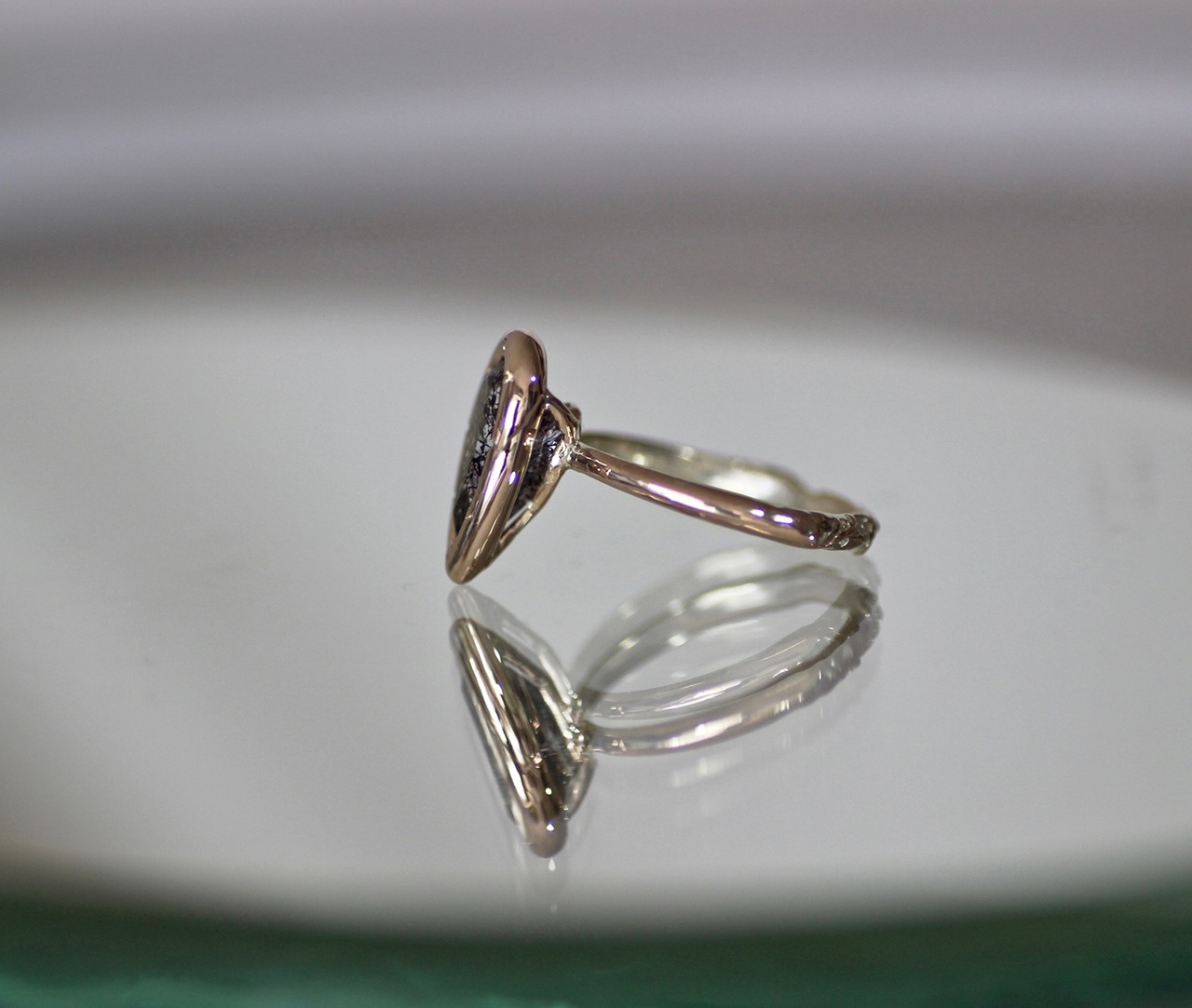 シャンパンカラーのゴールドと合わせ、特別なリングと仕上げました
