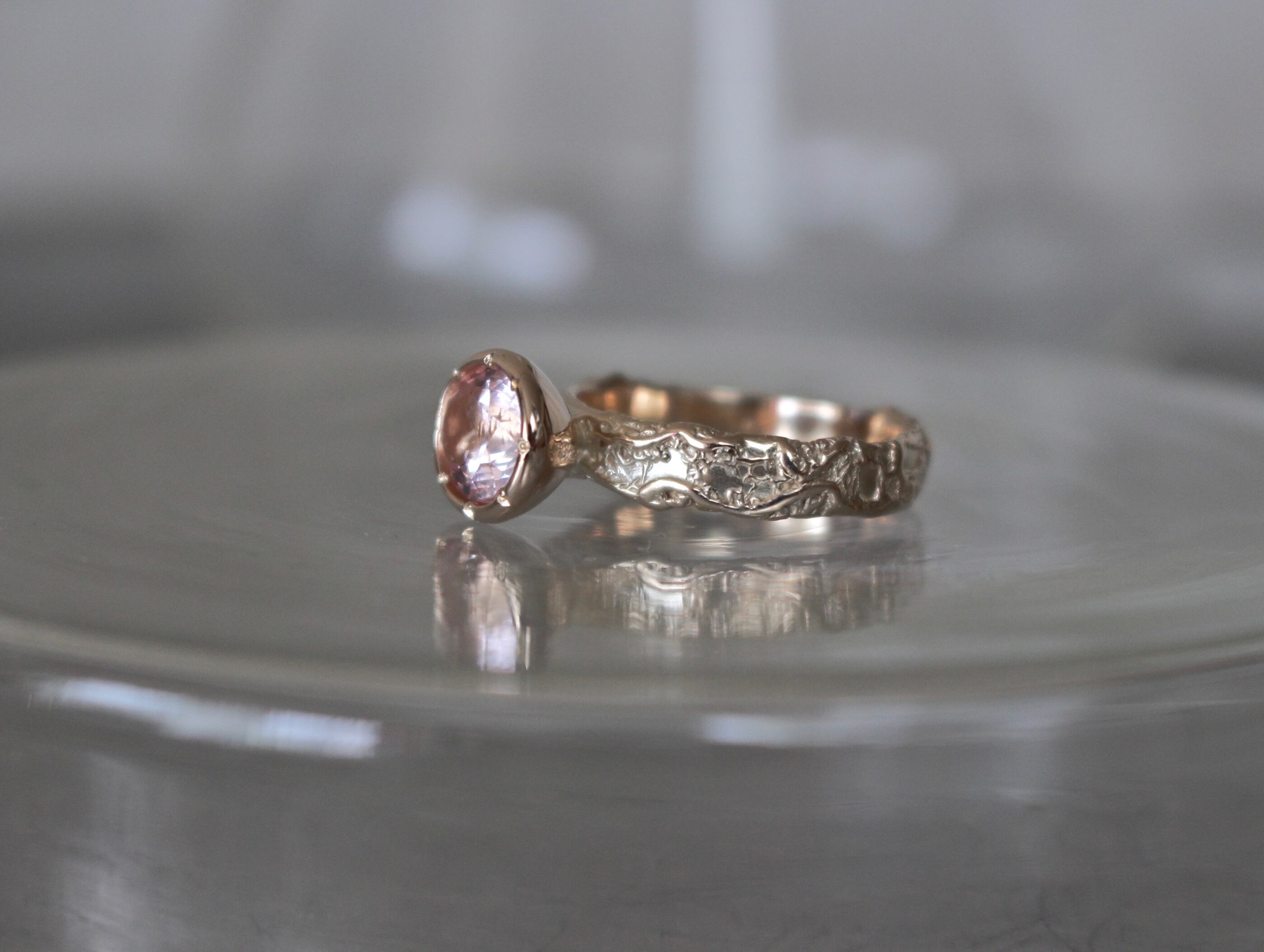 ツルン、とシンプルなフクリン留めの石座は横から見ると