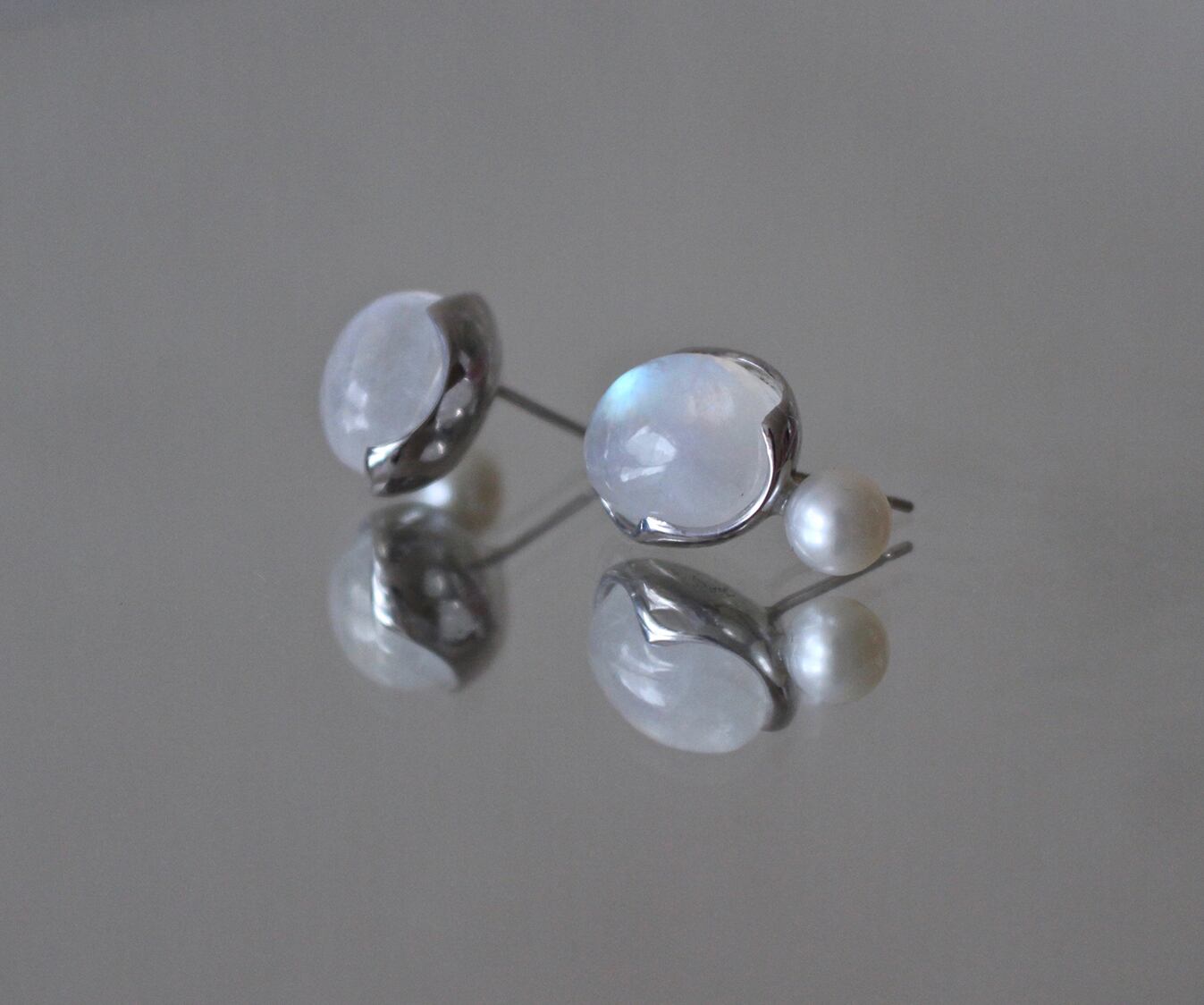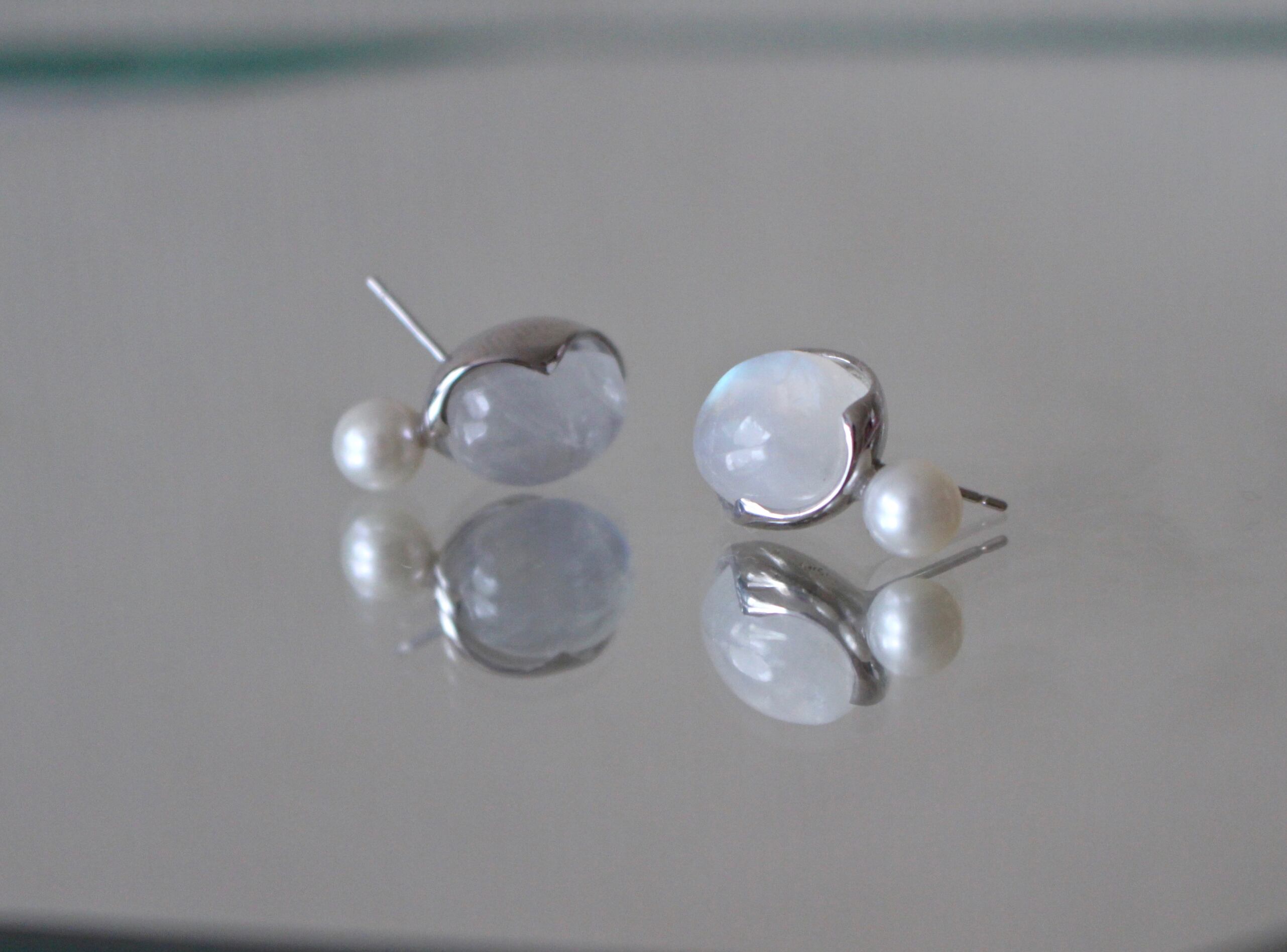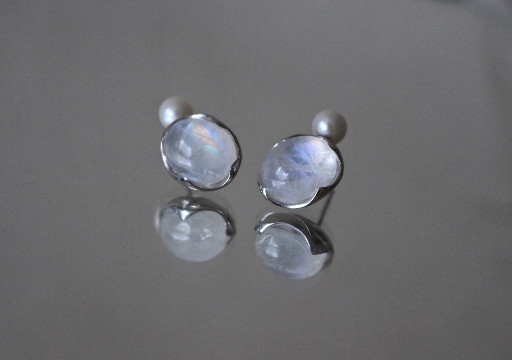 "AYA" studs Rainbowmoonstone & pearl earrings