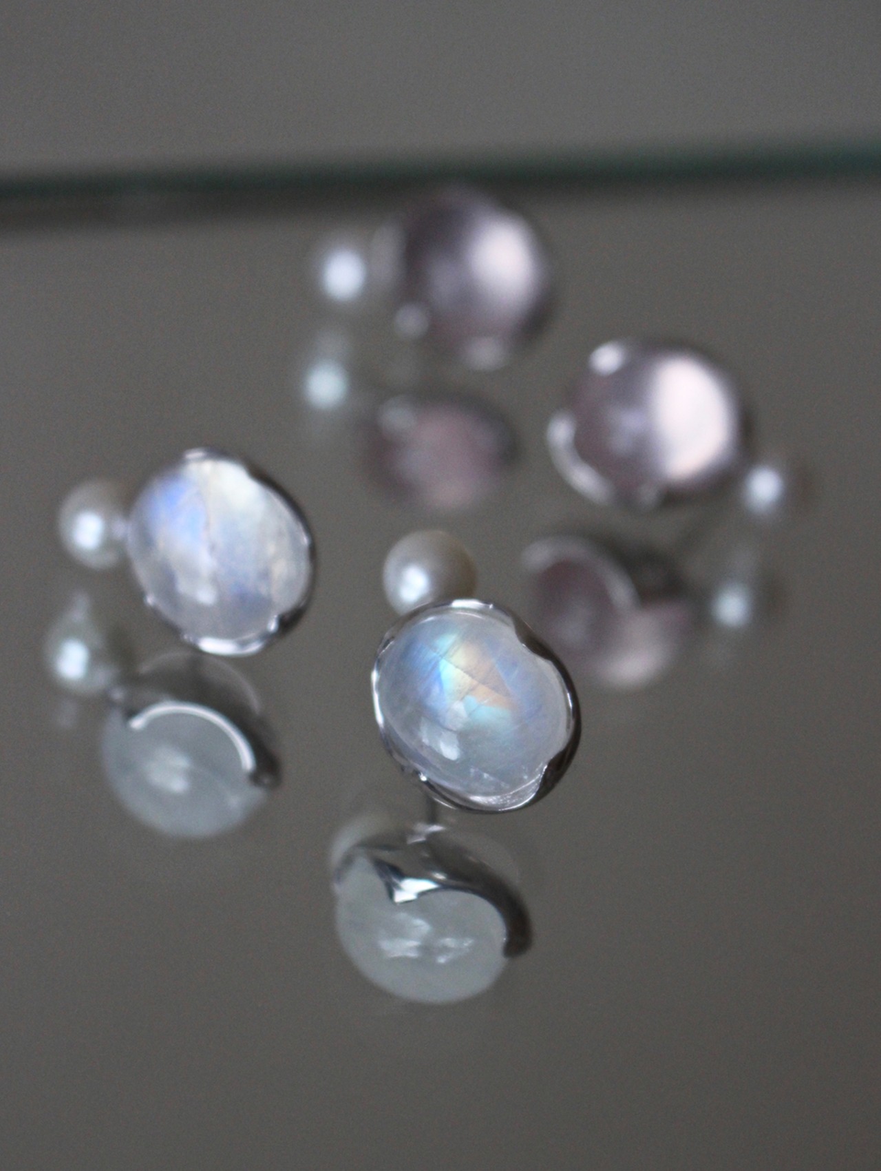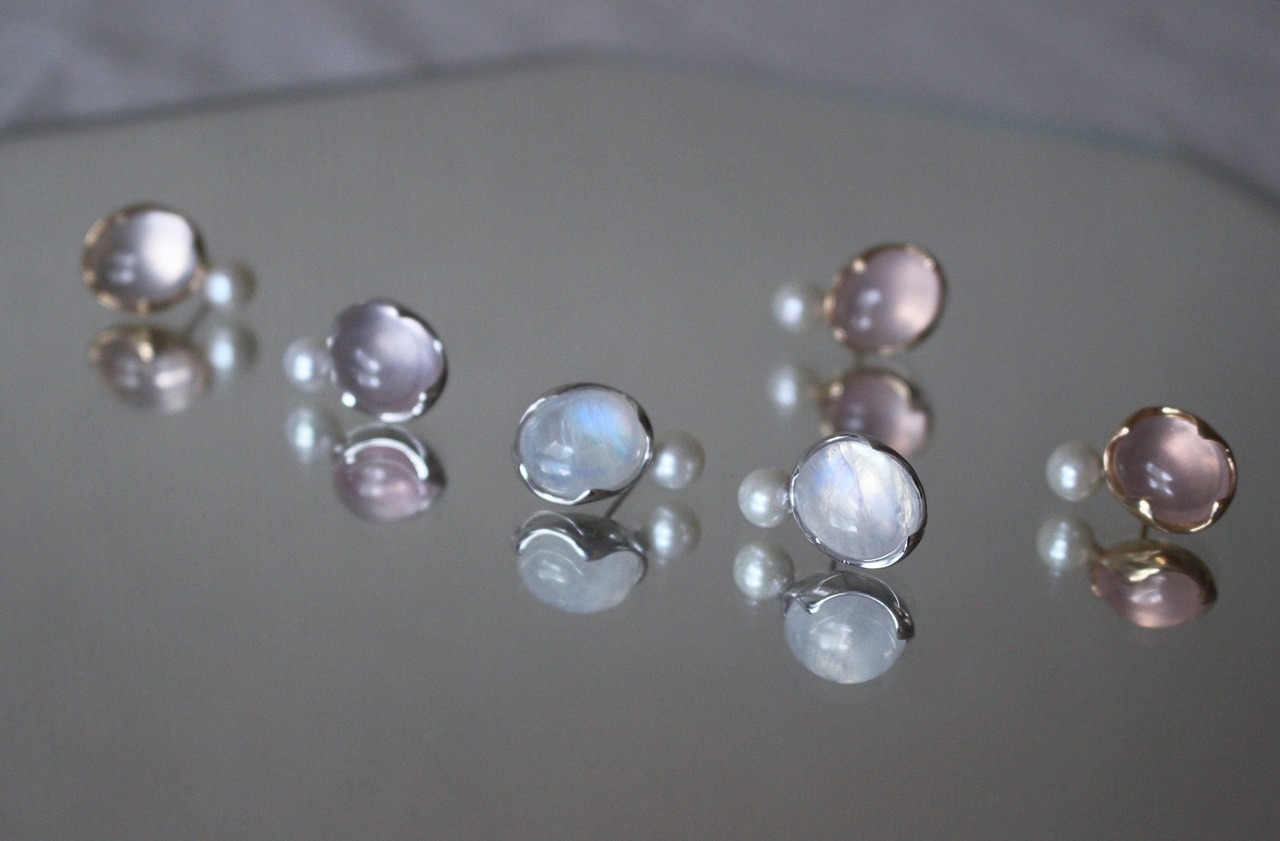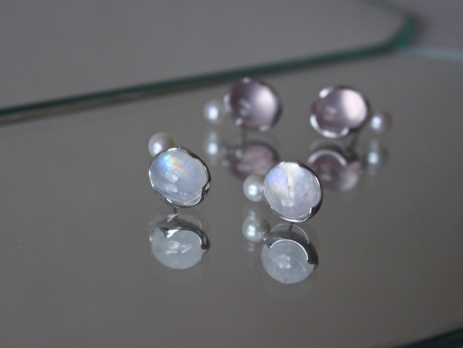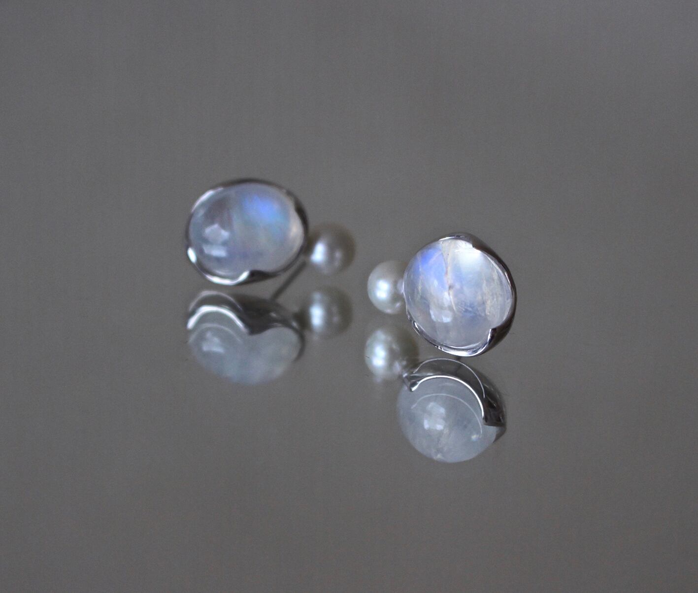 "AYA" studs Rainbowmoonstone & pearl earrings