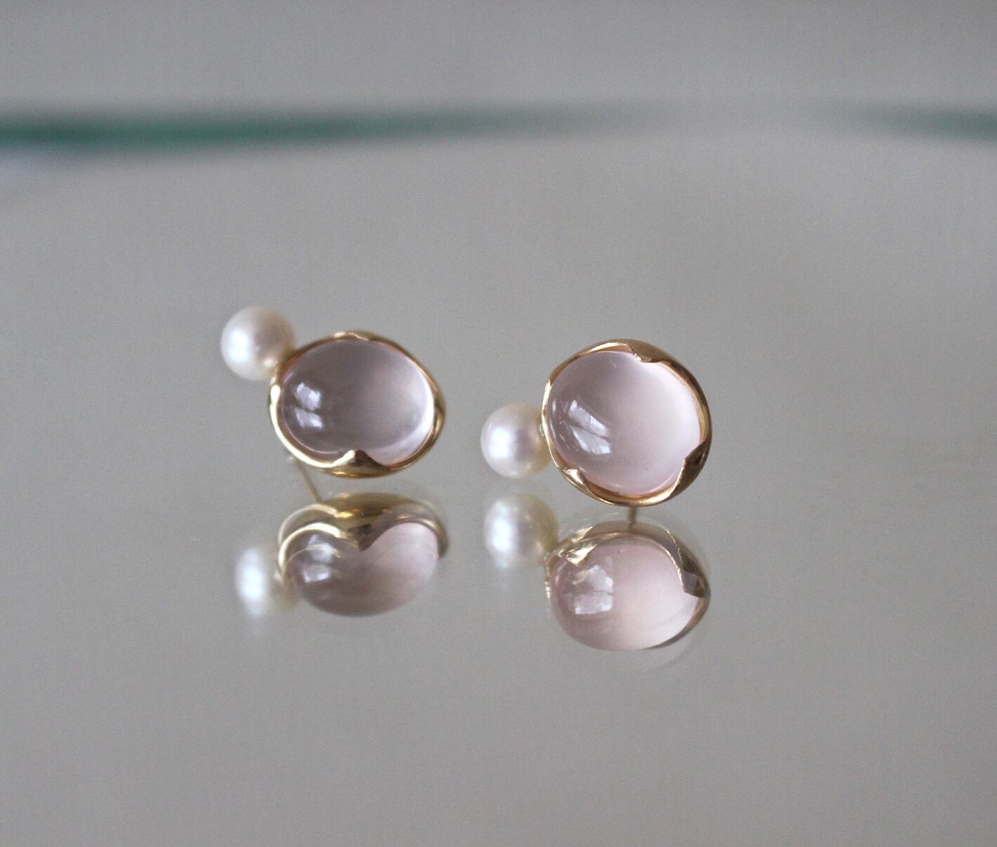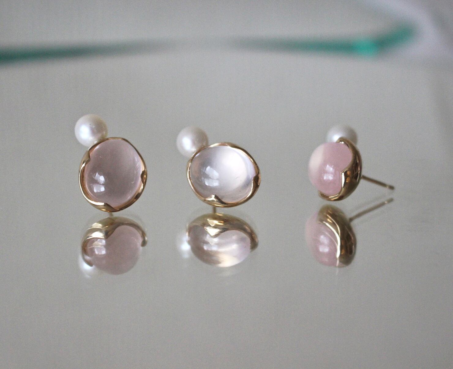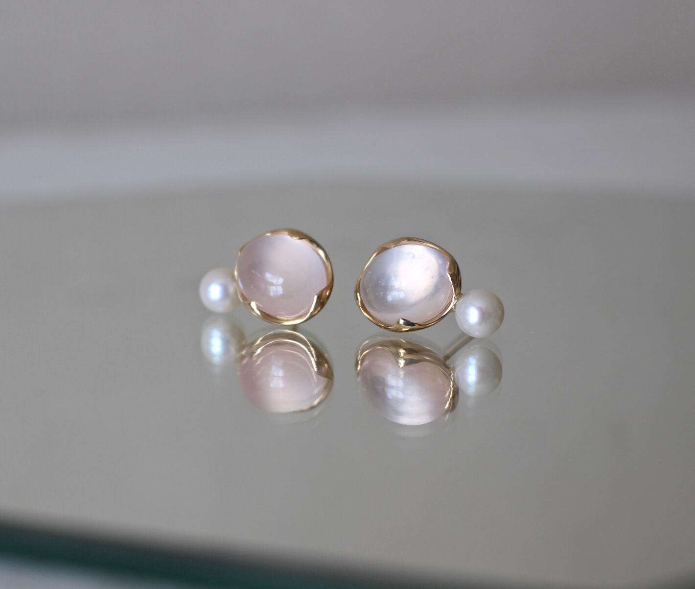 "AYA"studs Rose quartz and pearl earrings vermeil