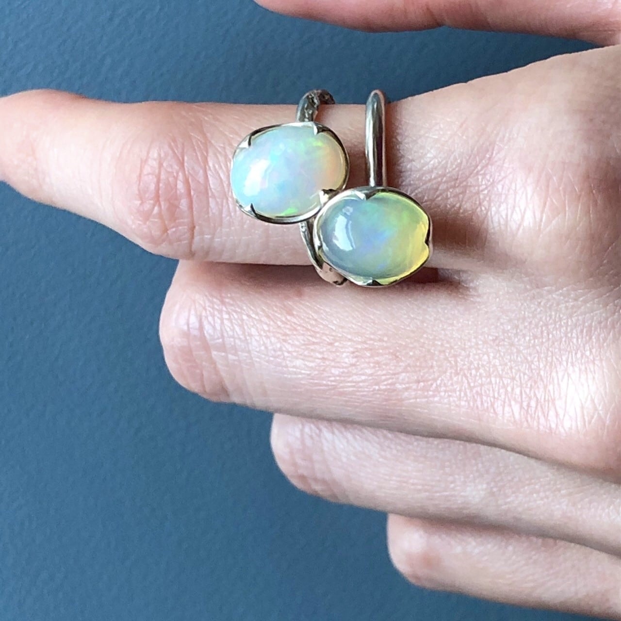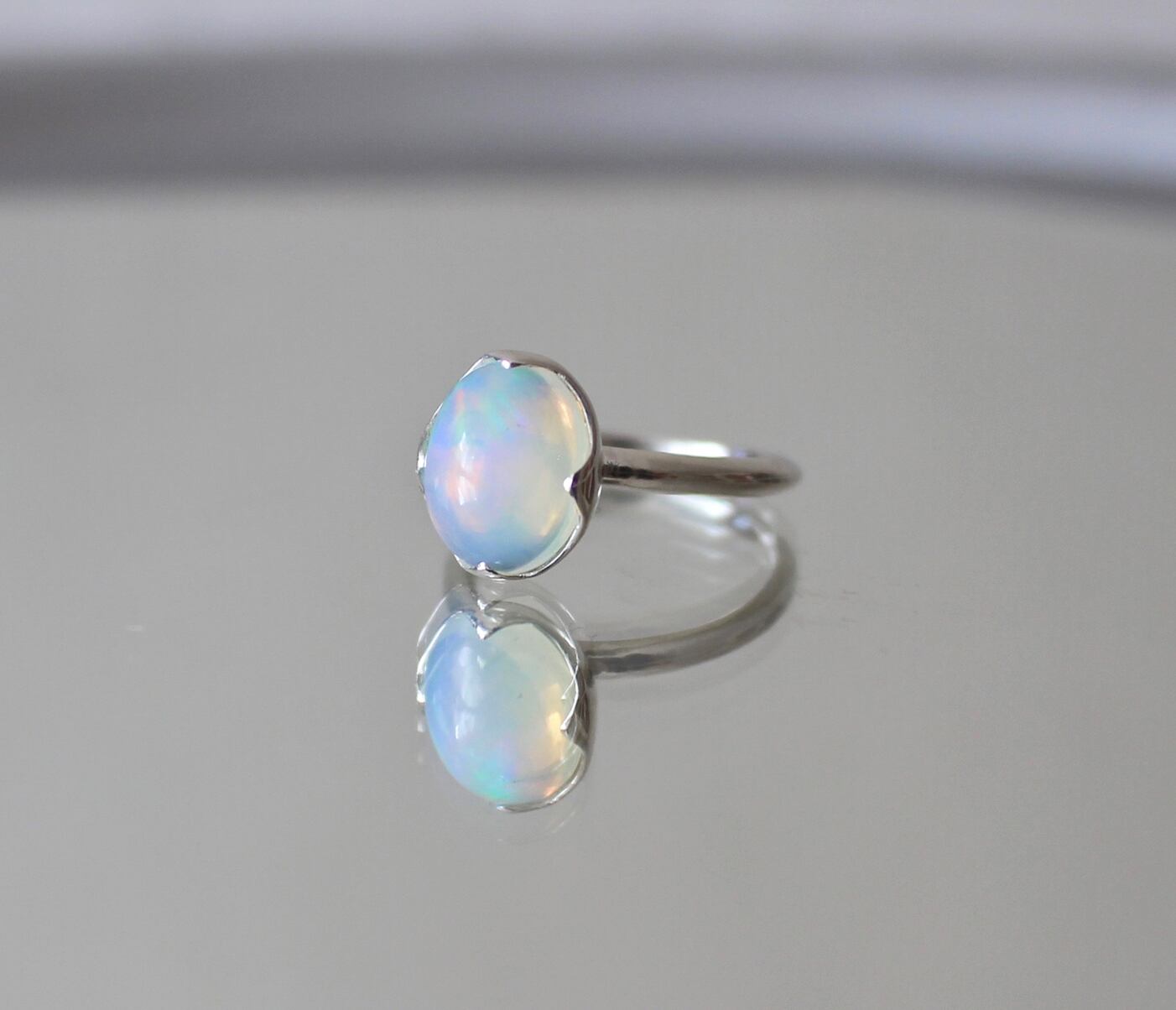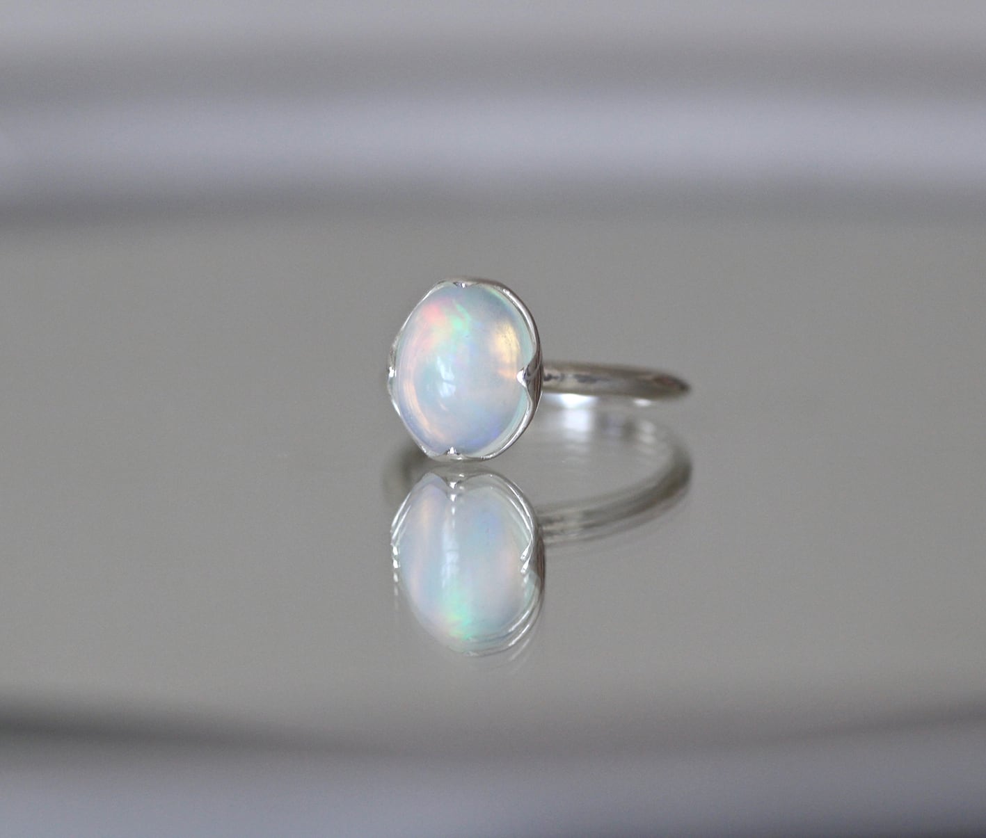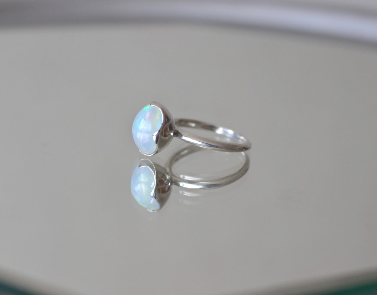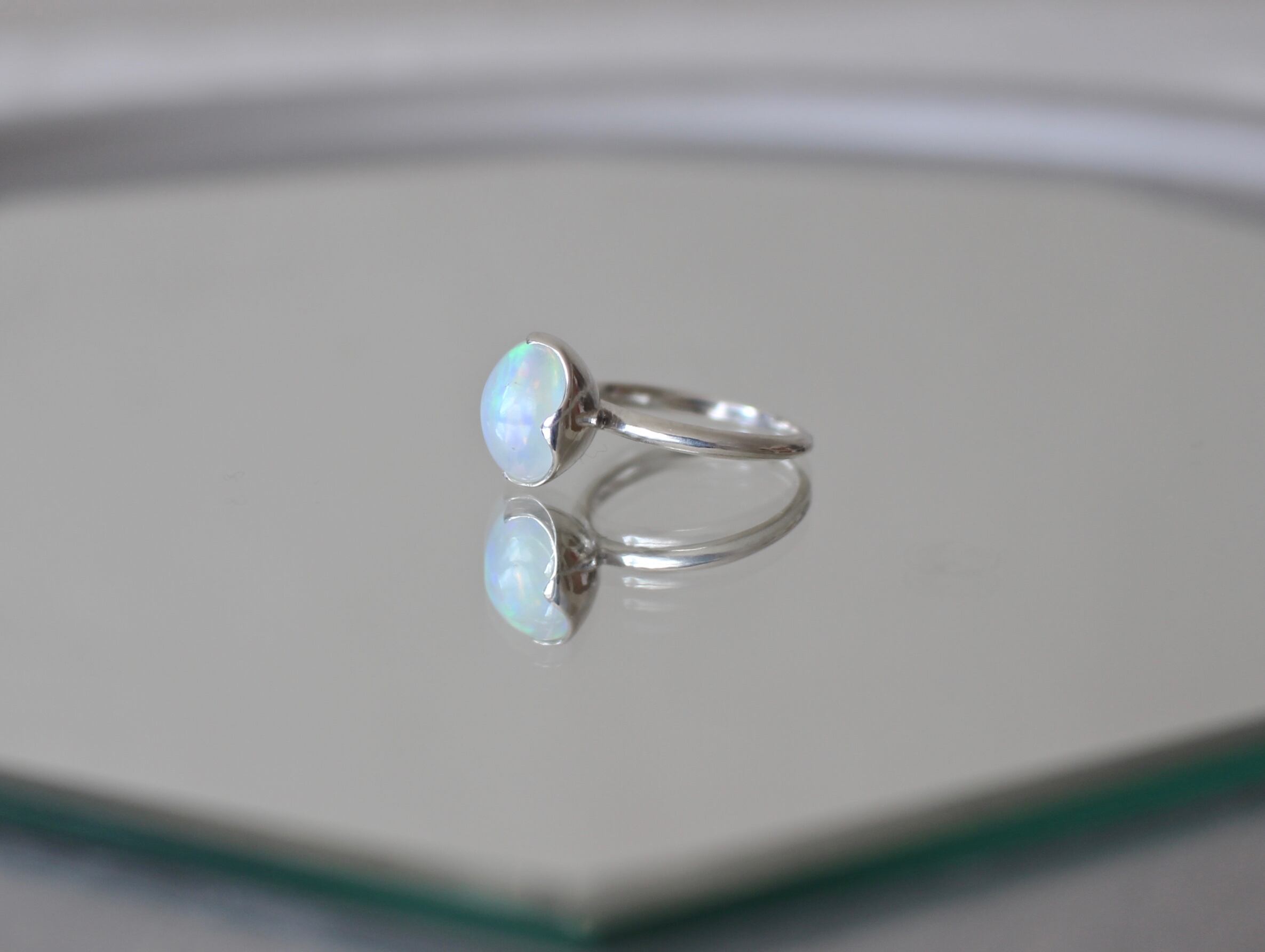 水の雫を思わせるウォーターオパールのリングです