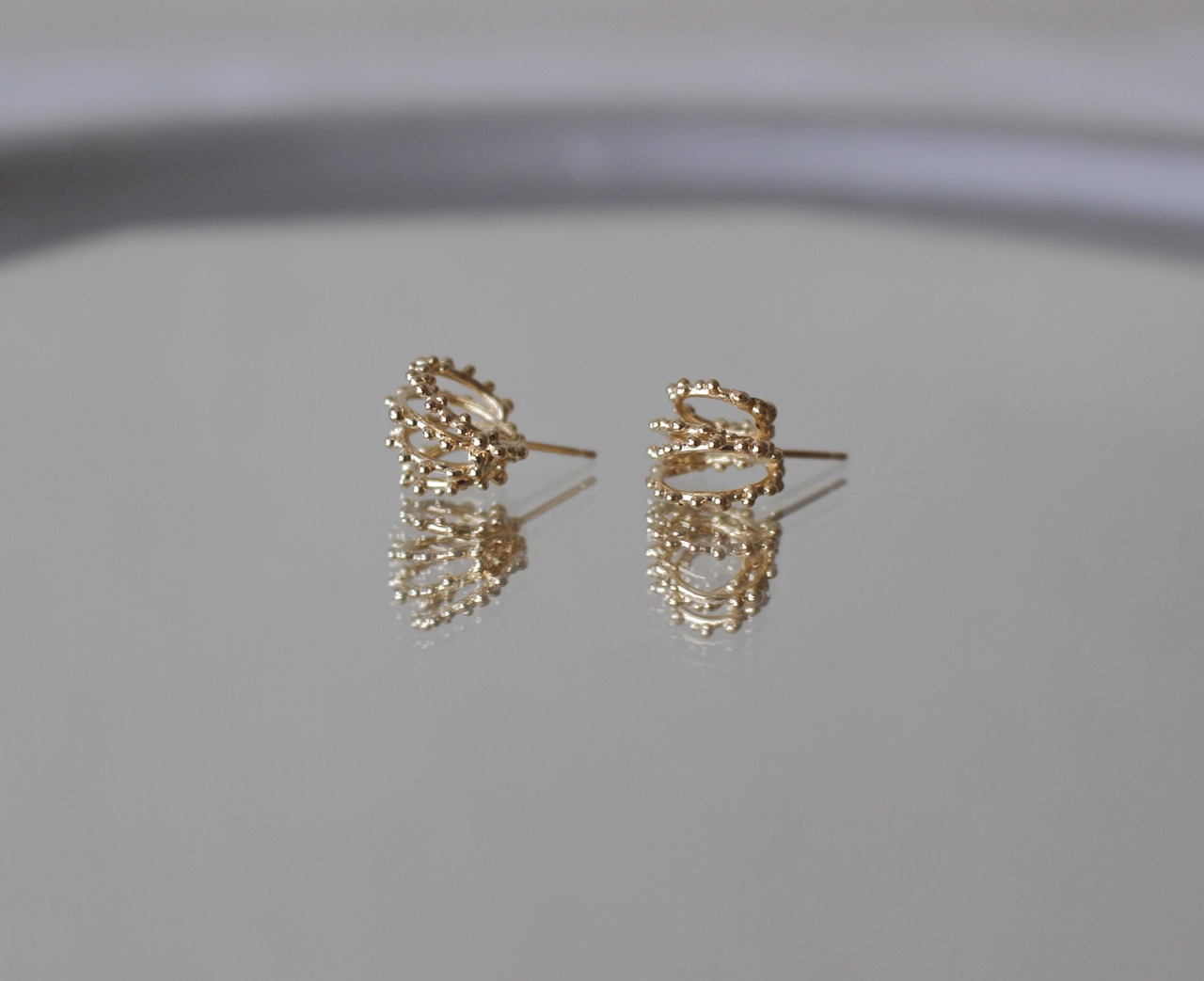 耳たぶに着ける角度や見る方向によって様々な側面をみせる