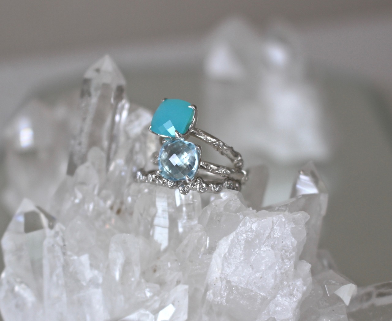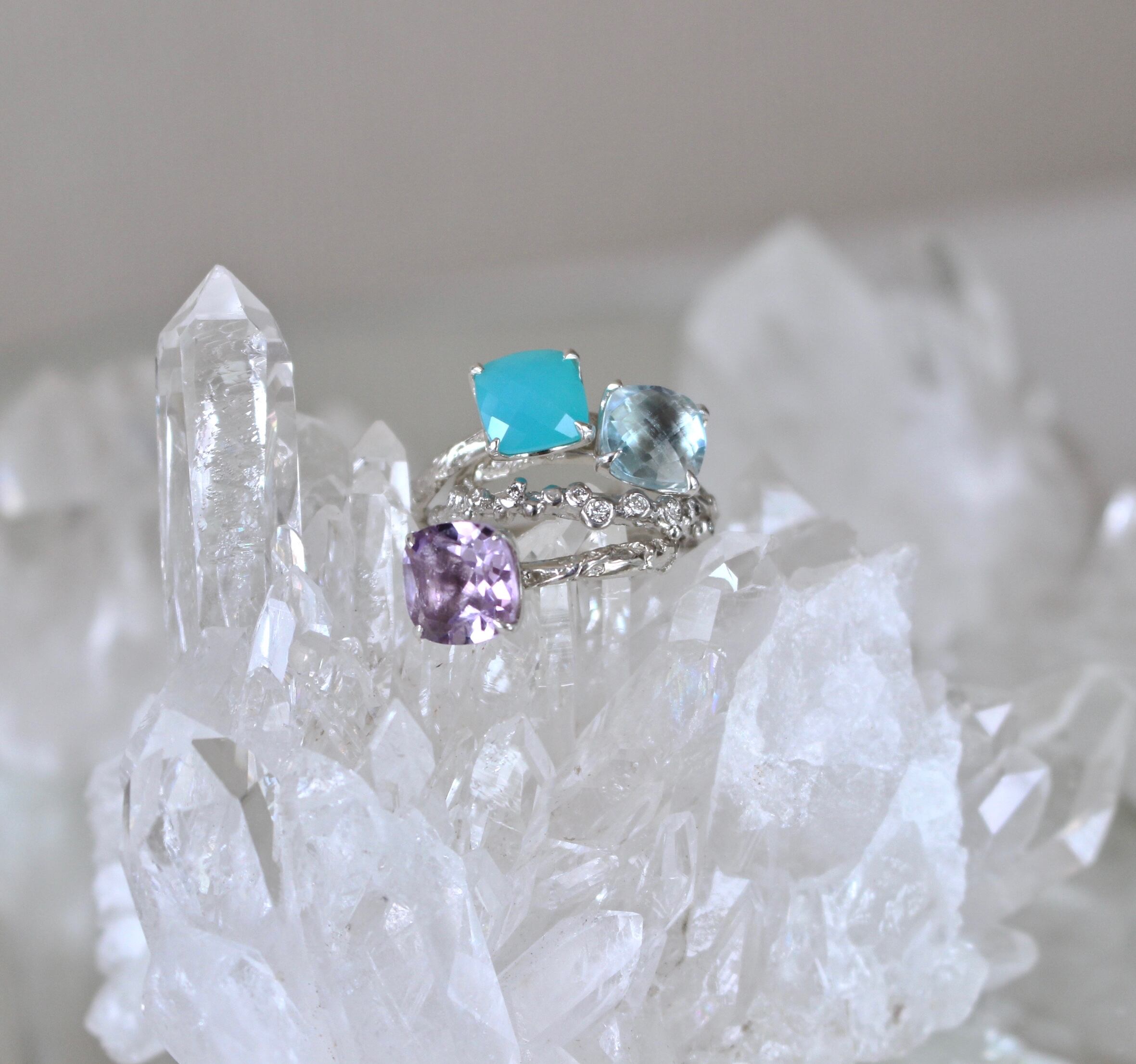 8/8mm cushion cut rose amethyst クッションカット シーブルーカルセドニーリング