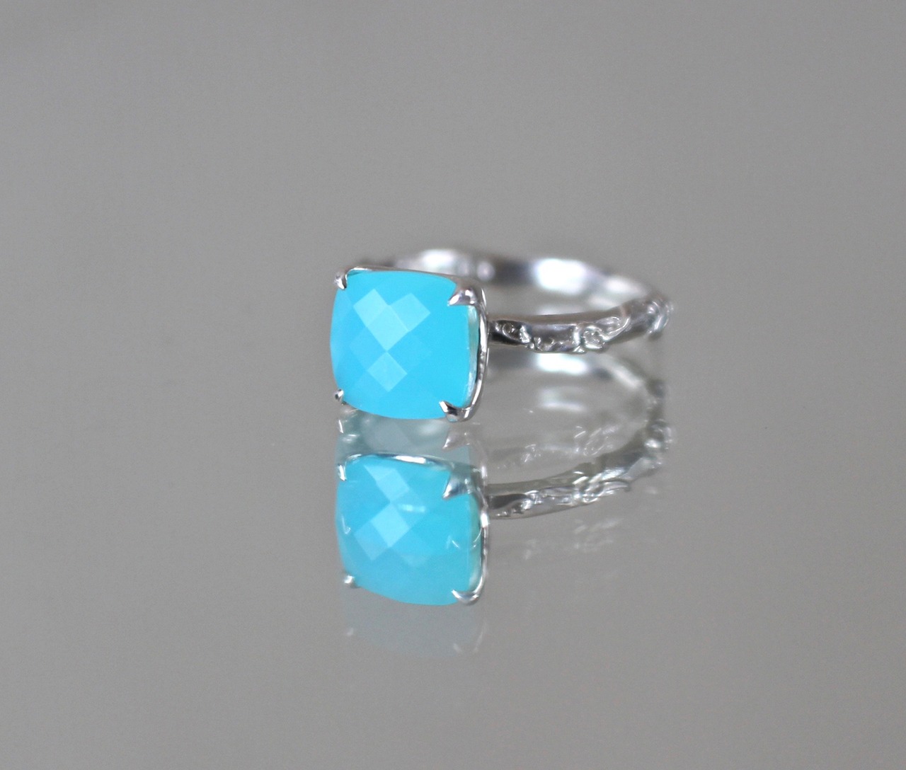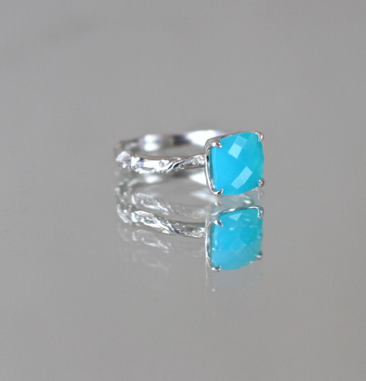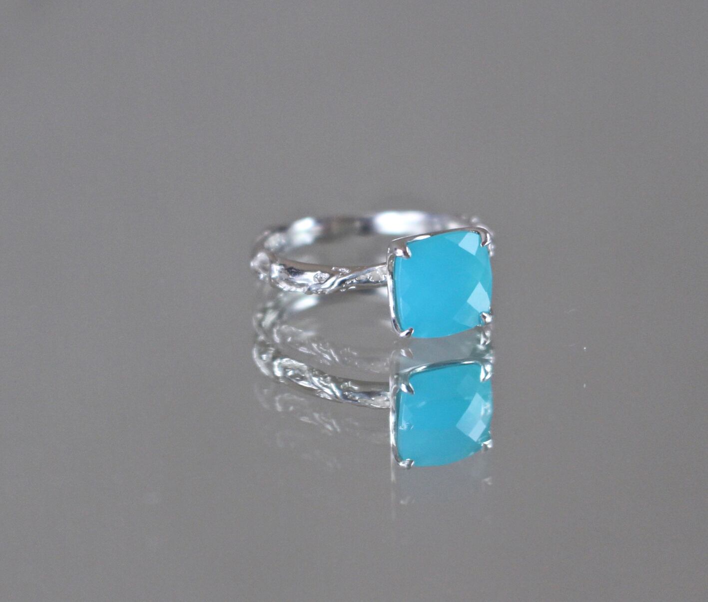8/8mm cushion cut sea blue calcedony in PT Silver (10%platinum)