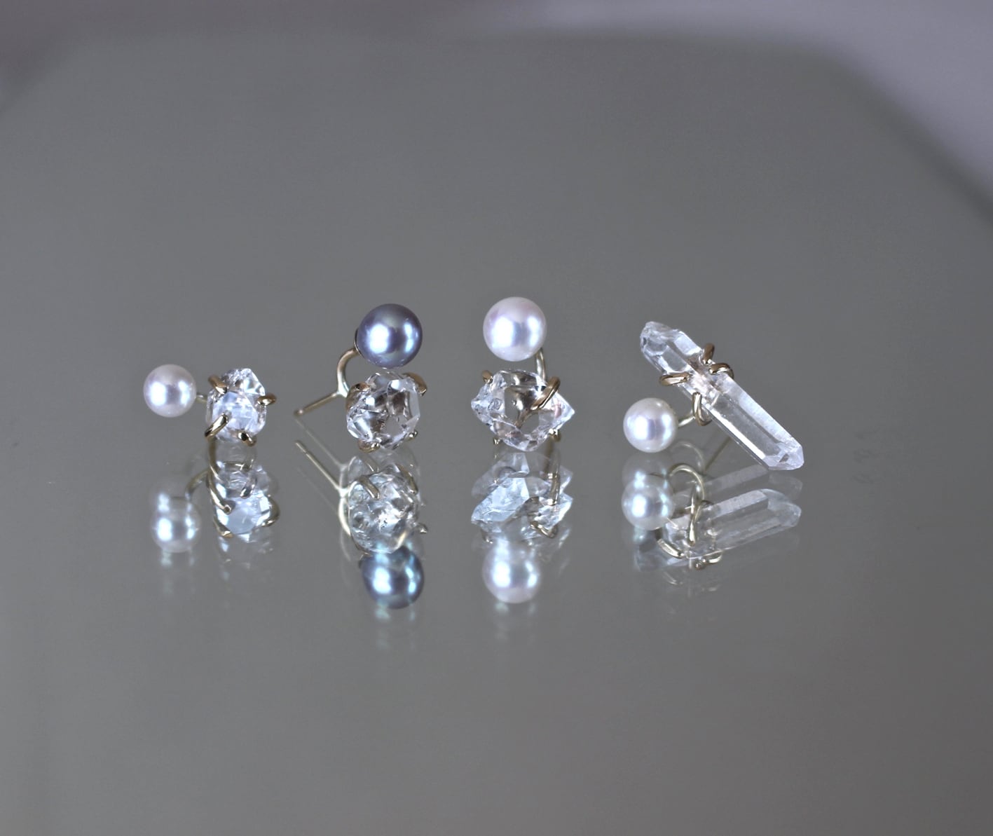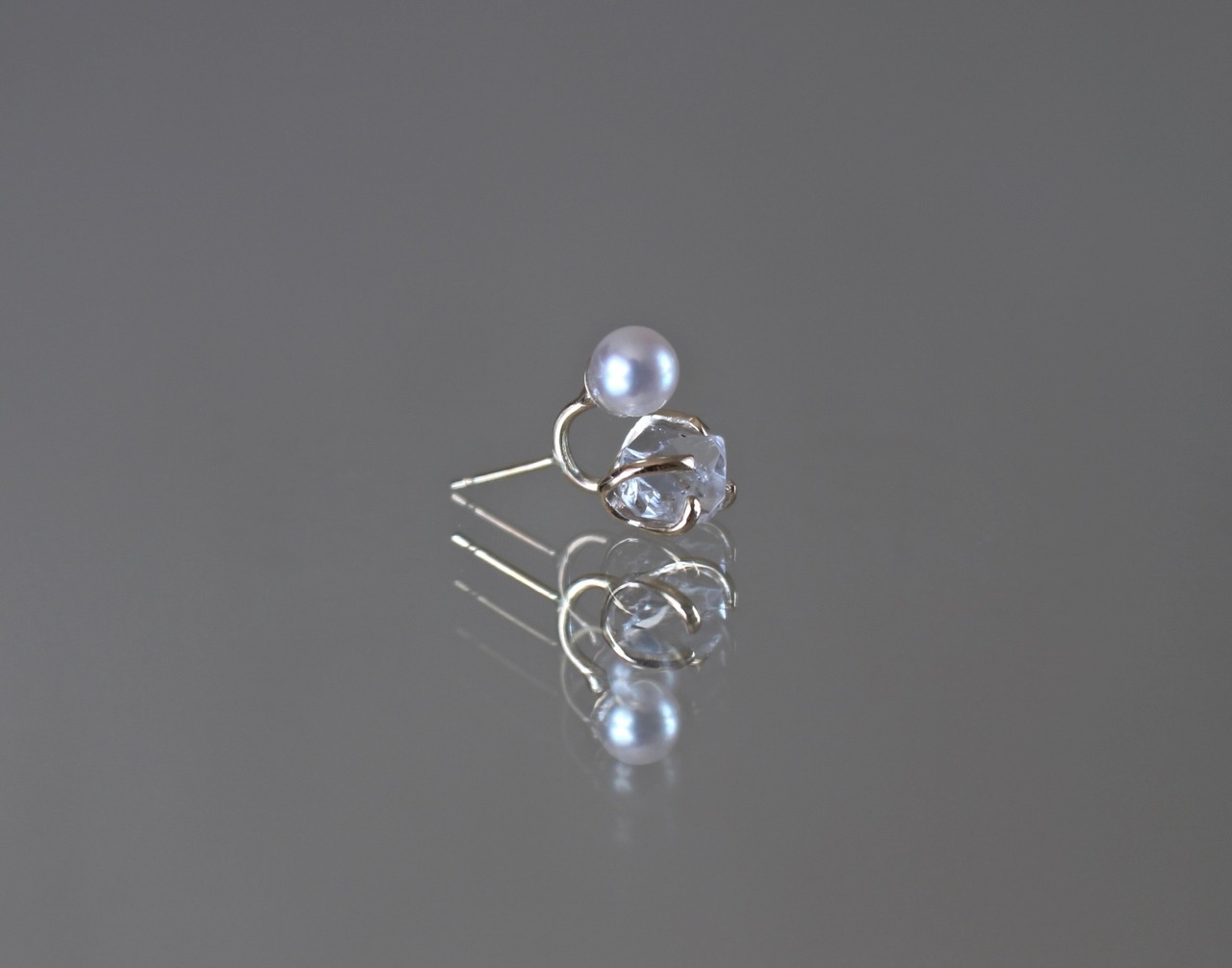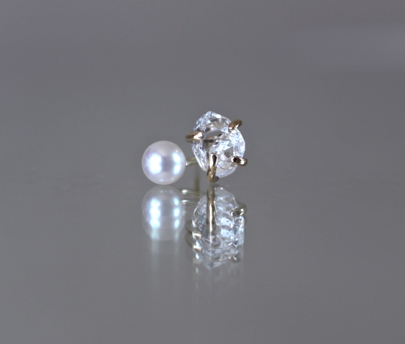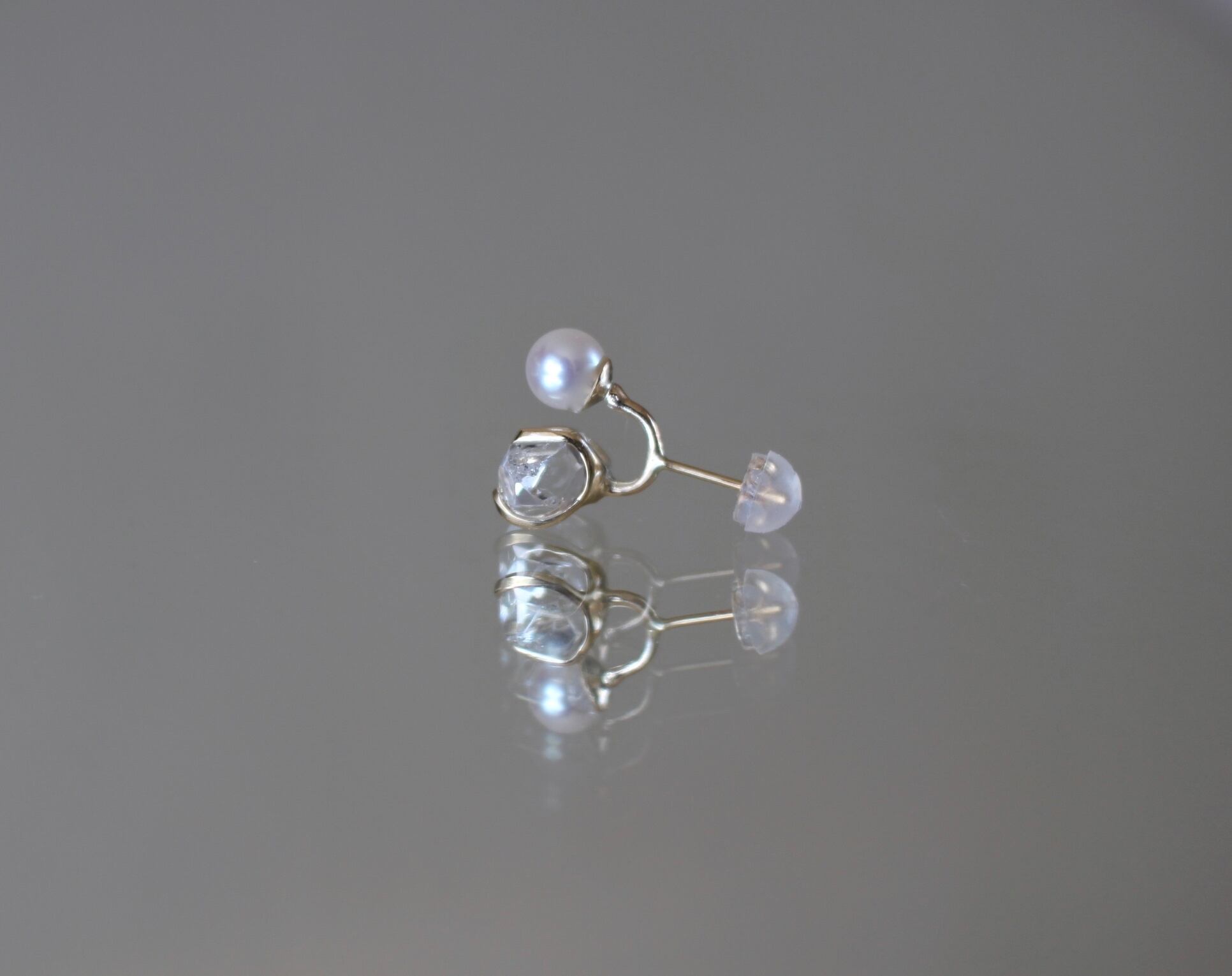 T&Bハーキマーダイヤモンド(mid)・パールピアス(片耳)