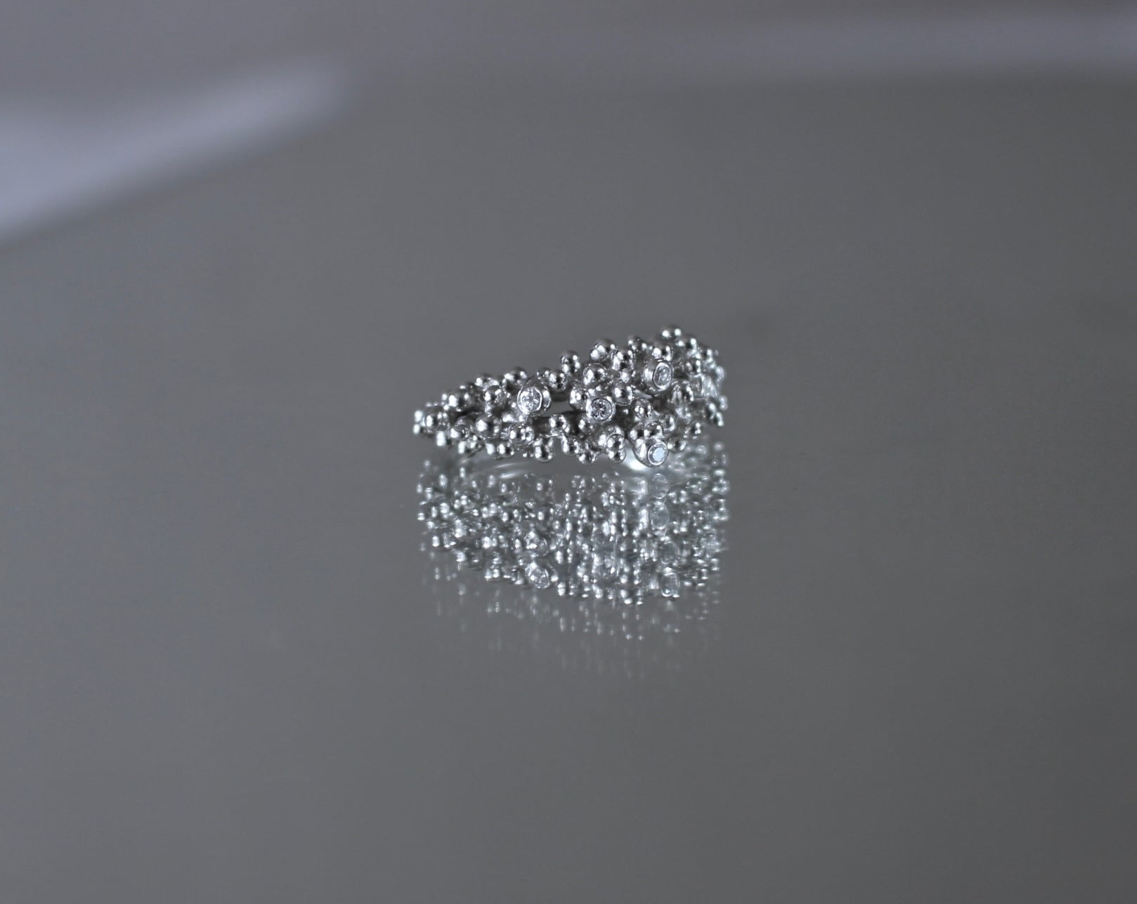 プラチナシルバーの輝きに、メレダイヤモンドを6ピース(.09ct)