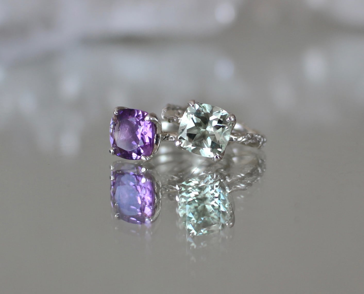10/10mm CU-cut green amethyst Ring in PT Silver (10%platinum)