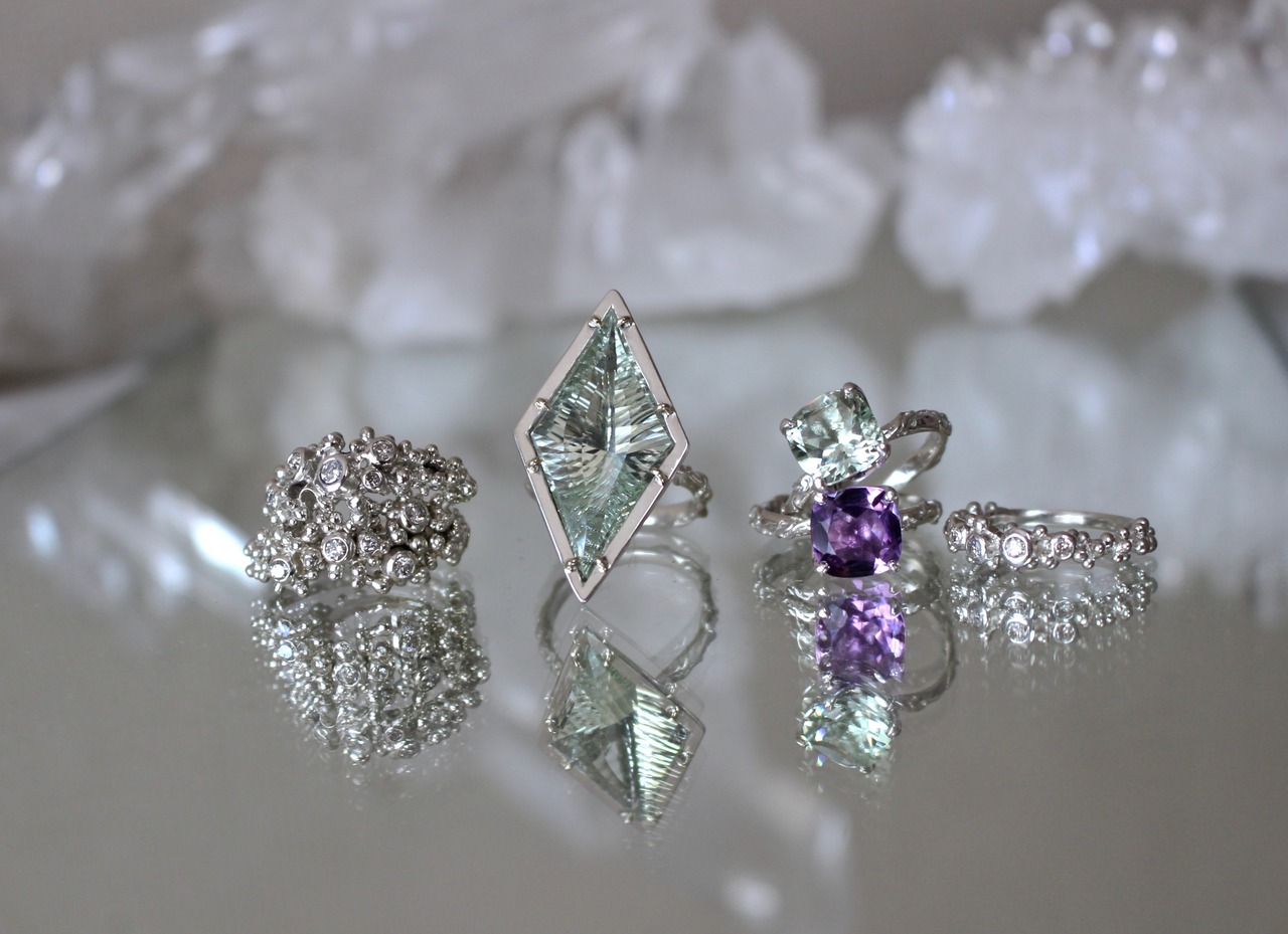 カットされたもの:長い年月を経て、この石の魅力をひきだすデザインのリングに