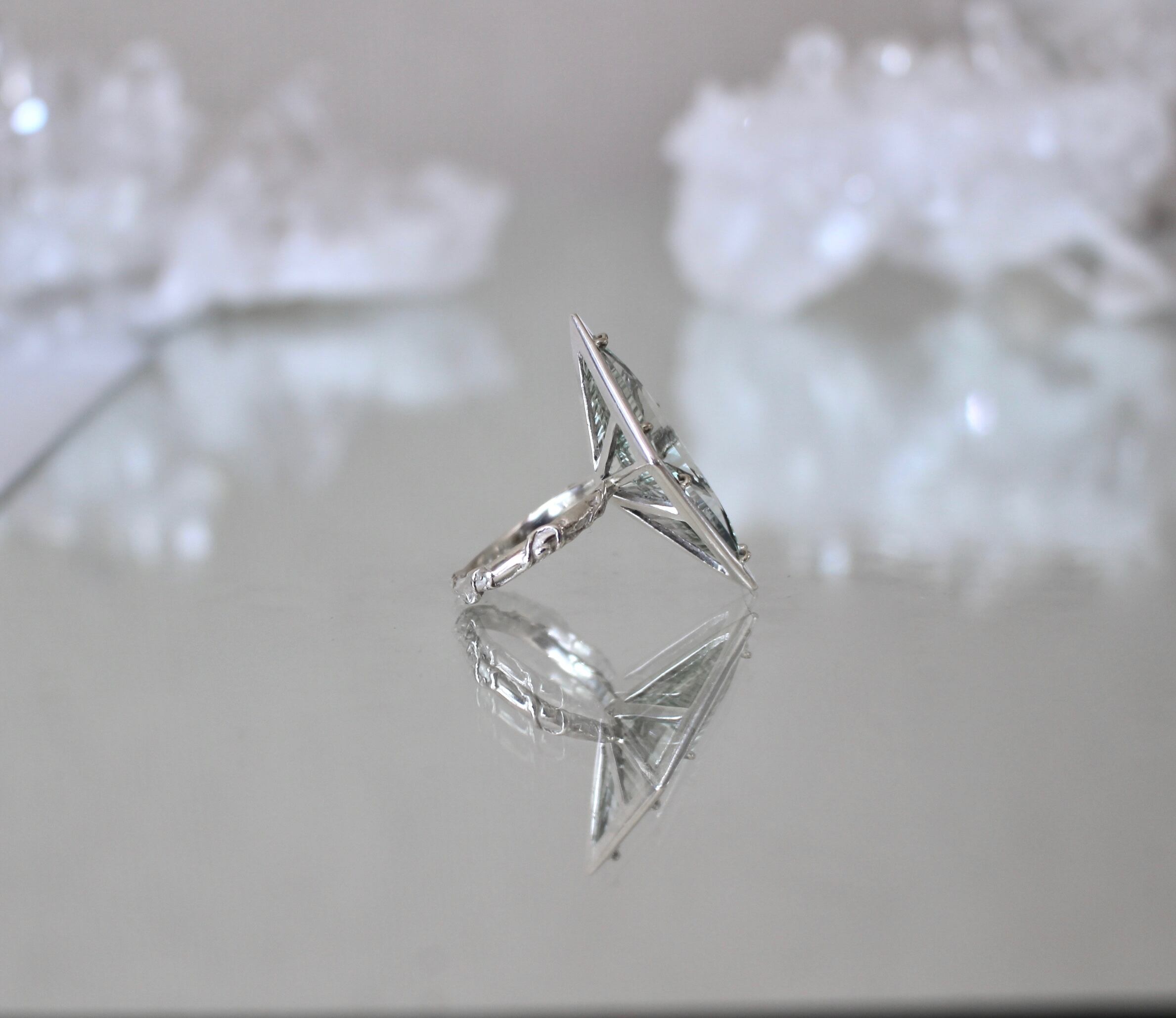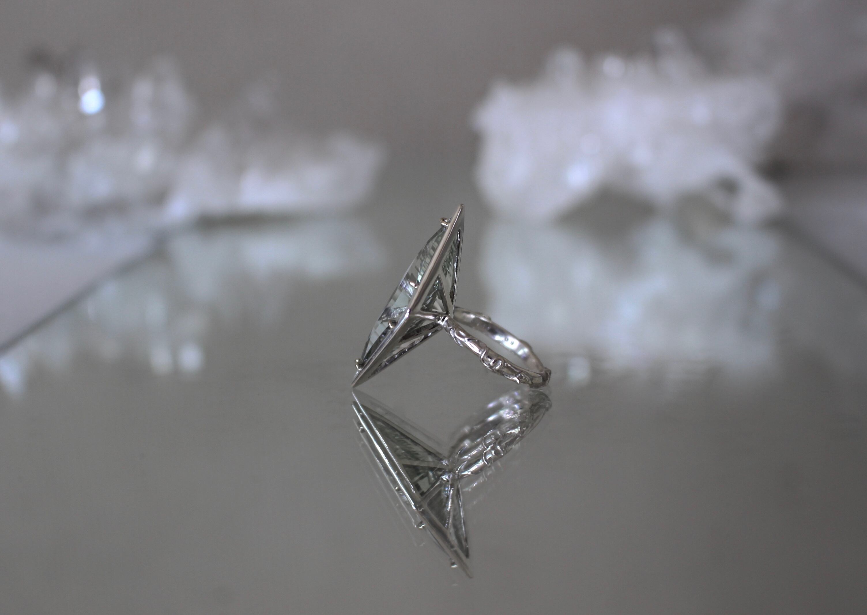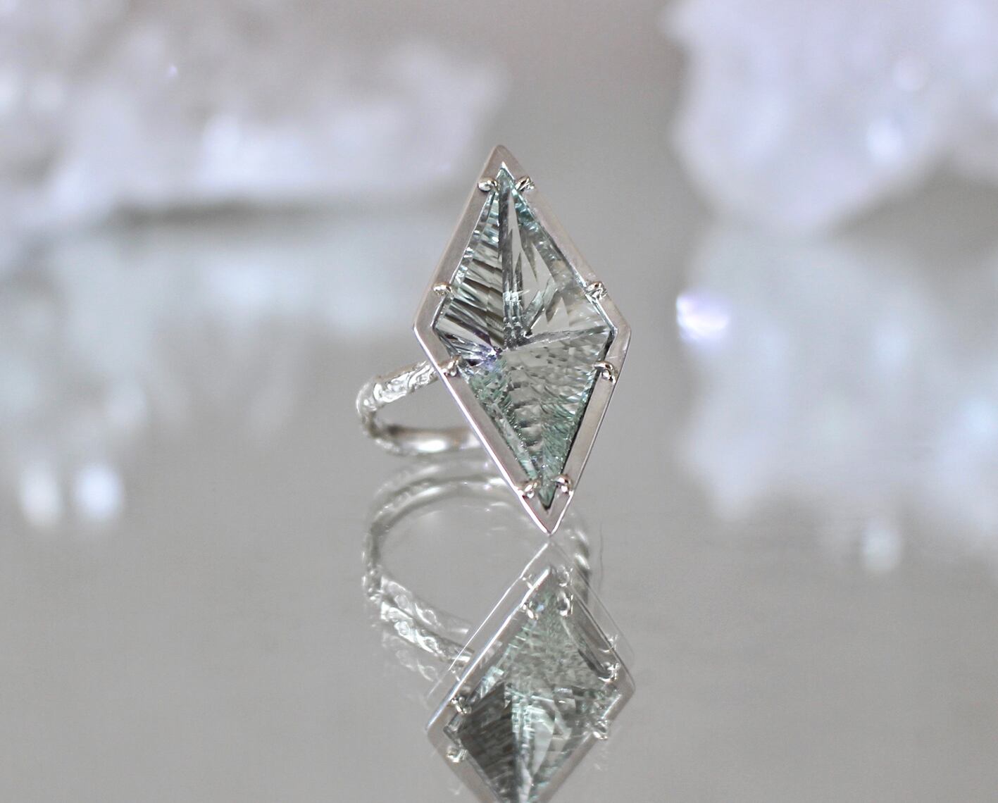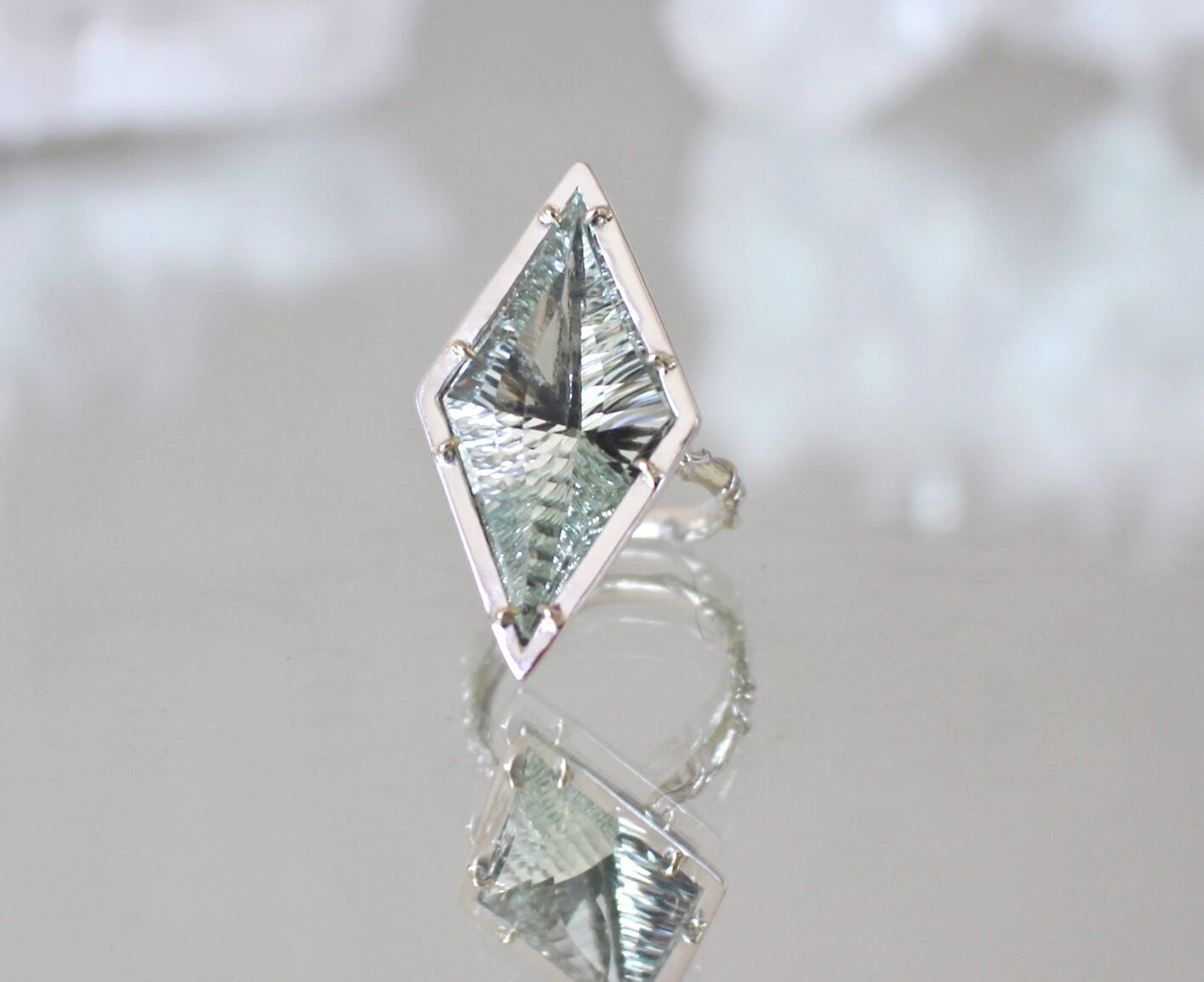 lg. special-cut diamond shape green amethyst ring in PT100 グリーンアメシストリング