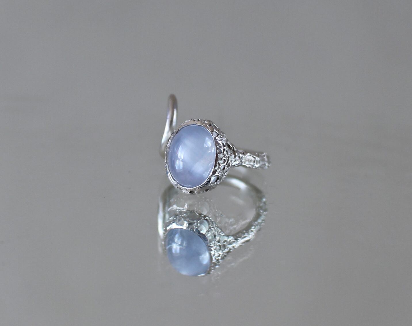 六芒星が浮かび上がるブルーグレーのスターサファイア